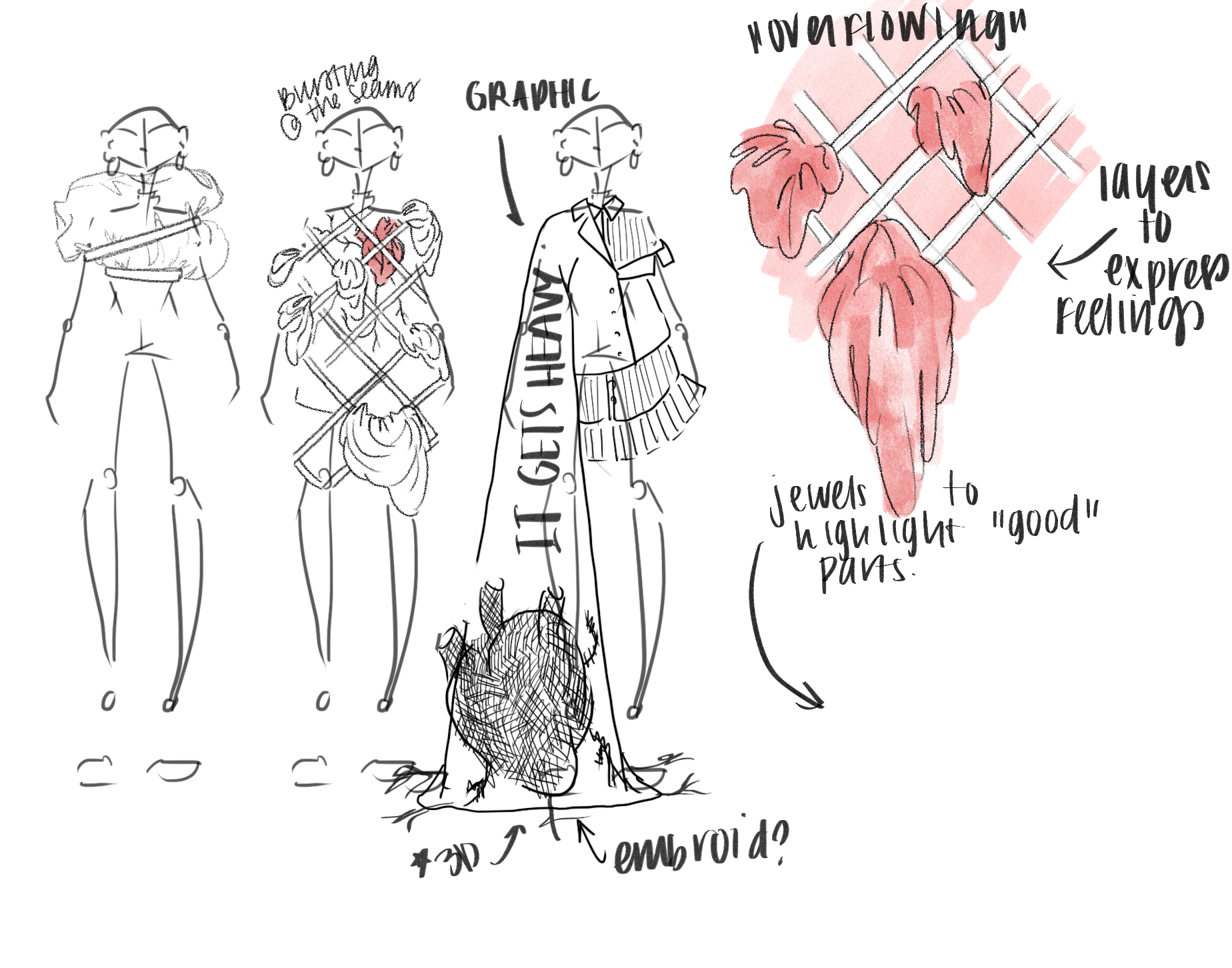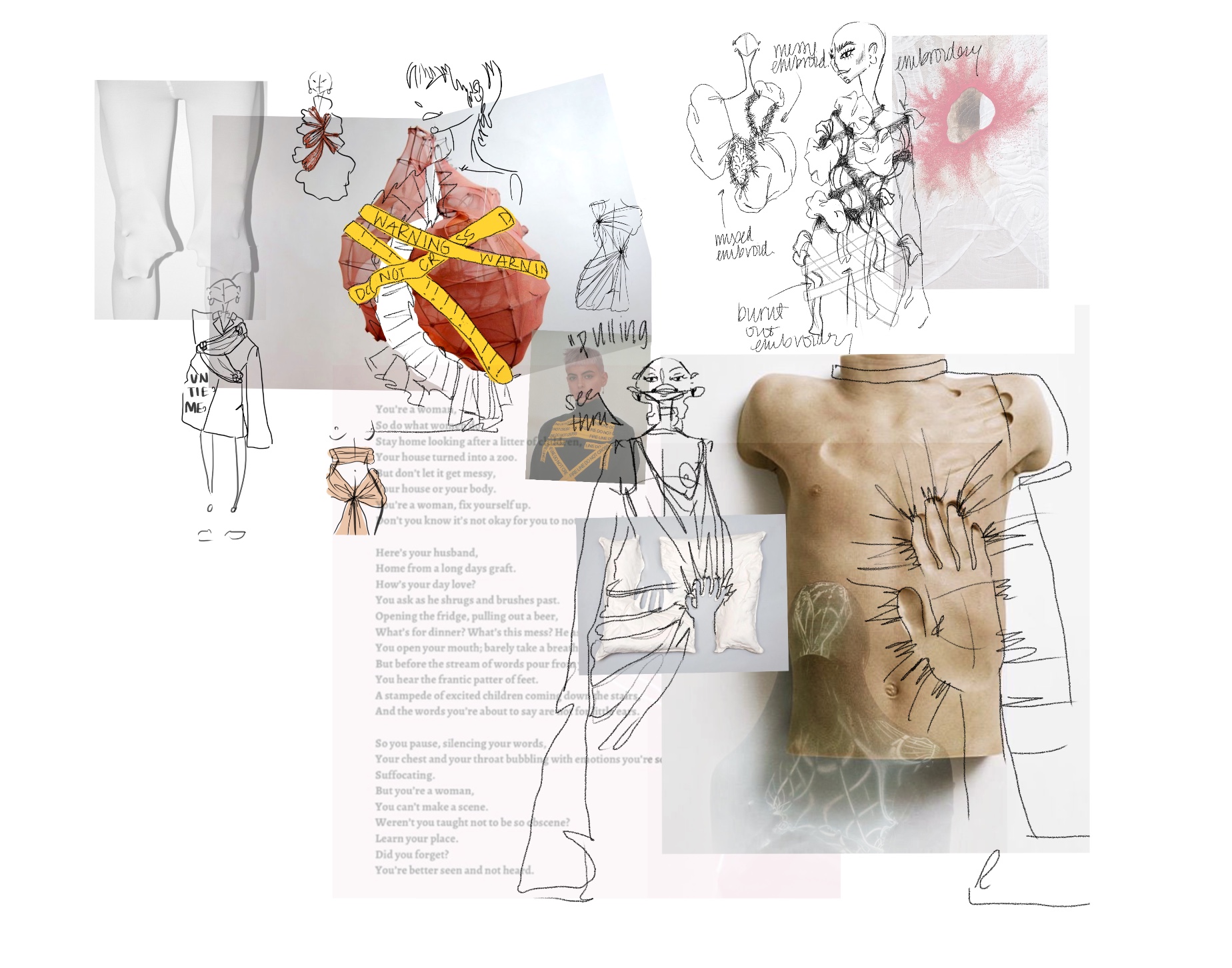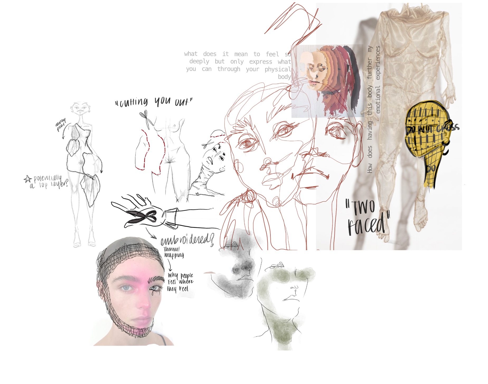My Senior Collection Anatomy of Feeling is inspired by individual emotional experience and exploring how emotions can be made physical. This collection was heavily inspired by my interpretation of other peoples emotions in poetry as well as many of my own experiences over the last year while going through the design development process.