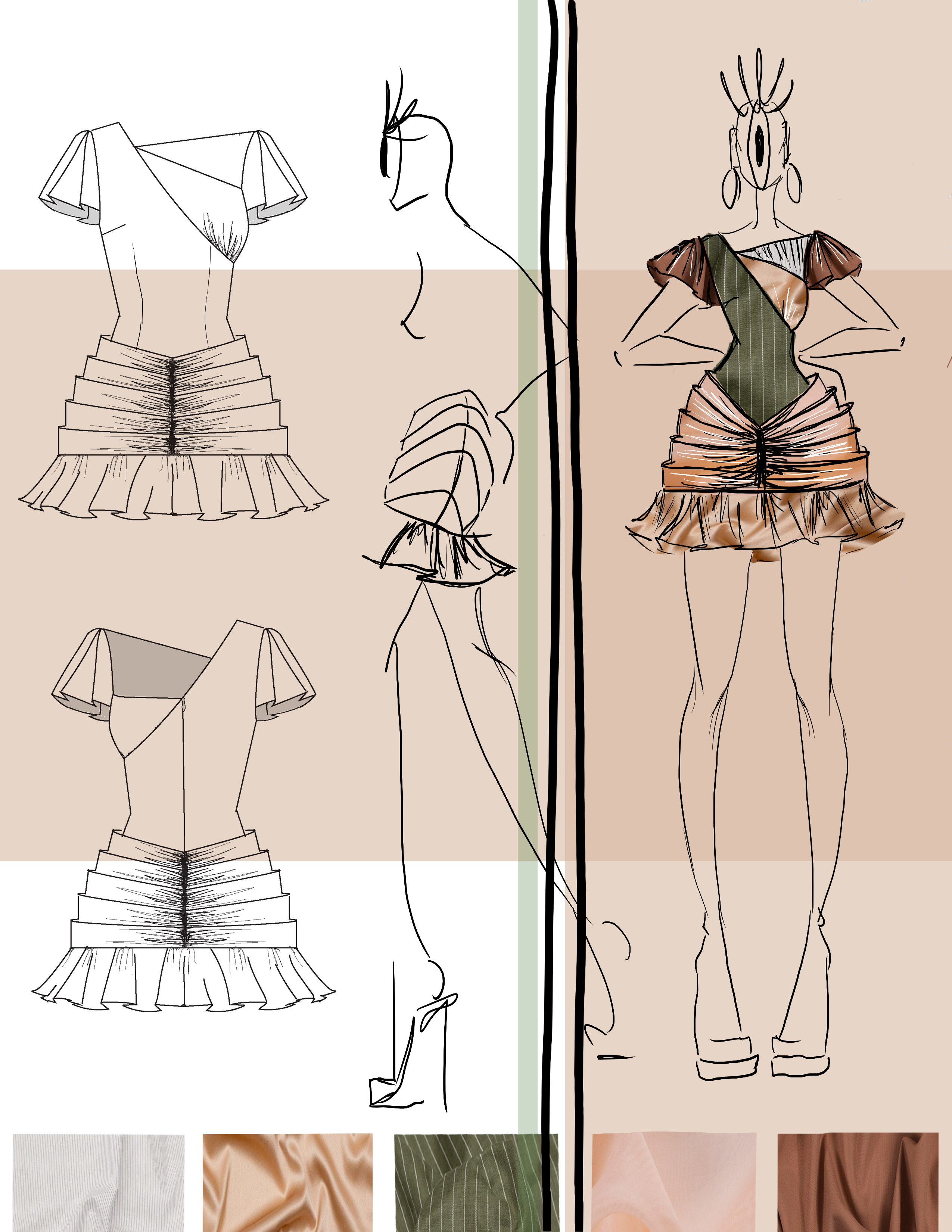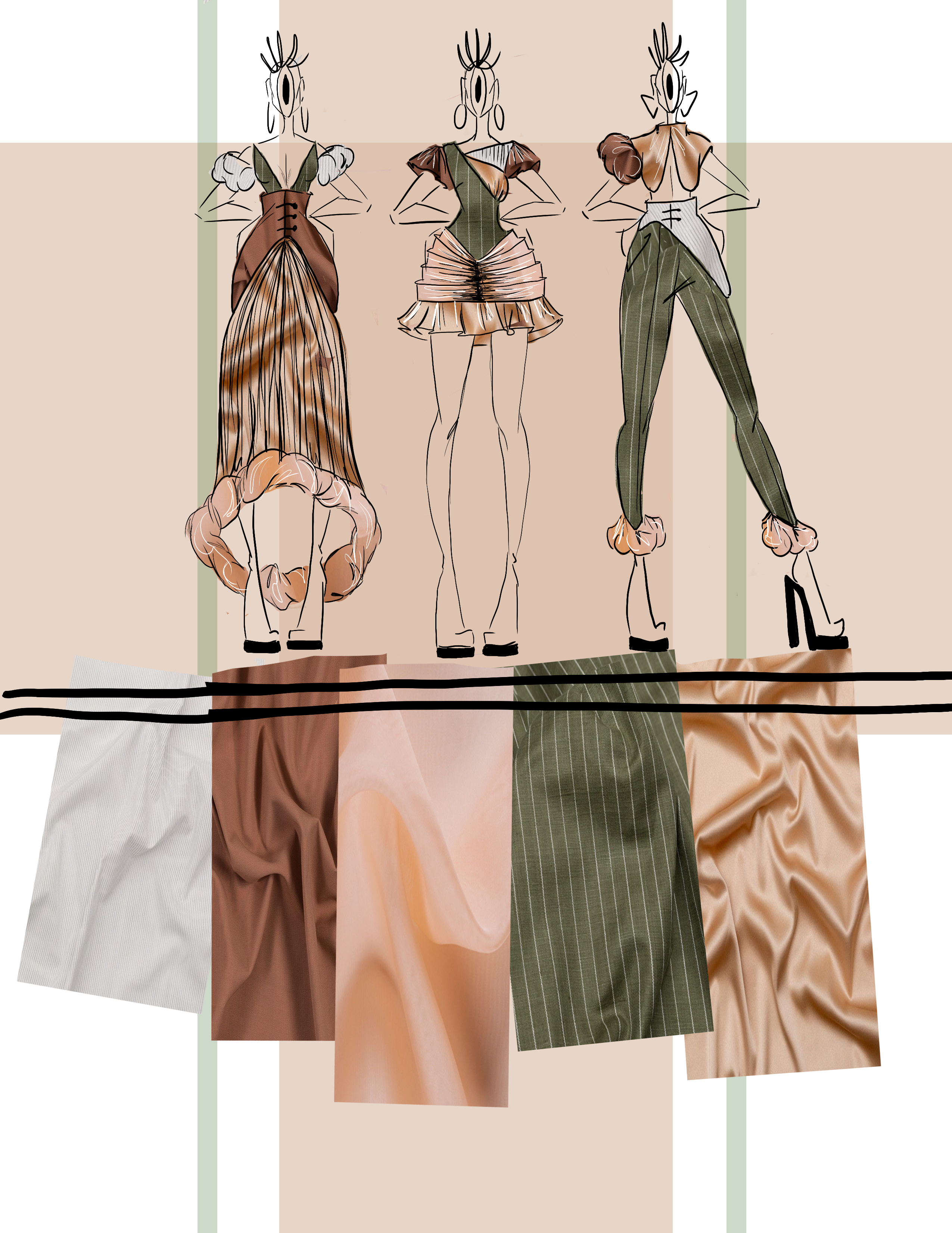 This project we were not allowed to have a concept. We did stand work to create fitted silhouettes to better understand how to split the bodice and follow the forms curvatures.