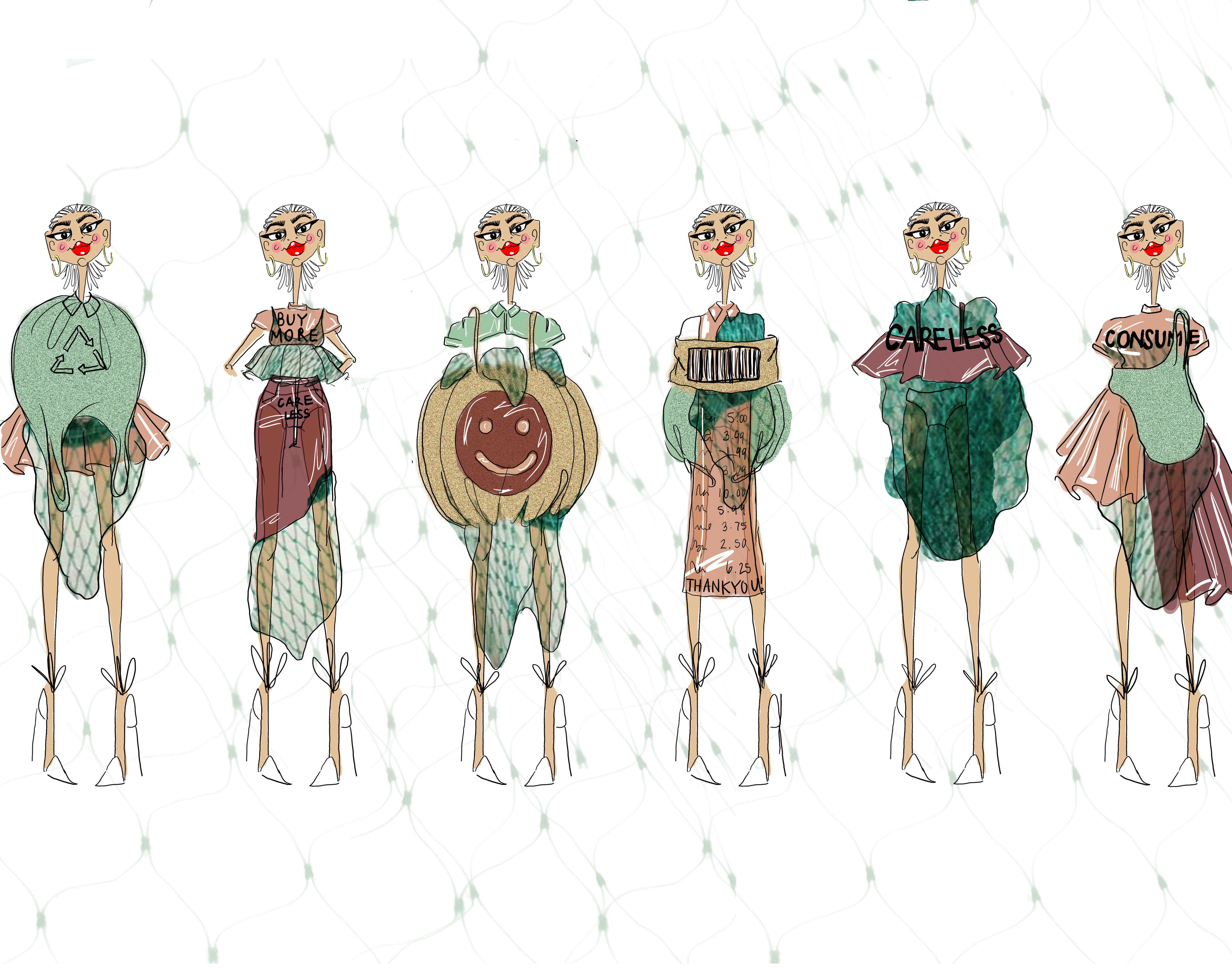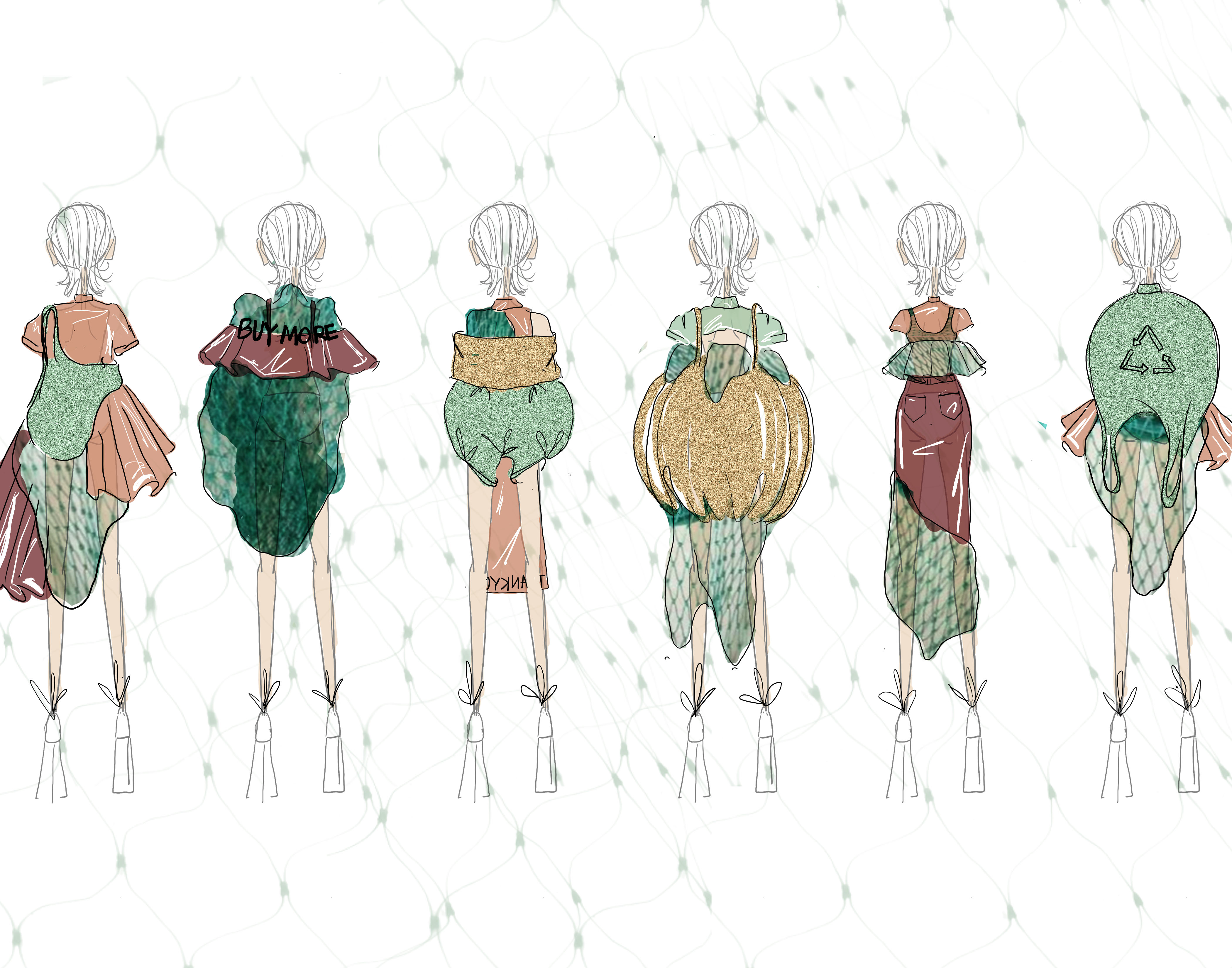 This project was inspired by sustainability and the use of everyday food packaging to make a fused usable material within clothing.